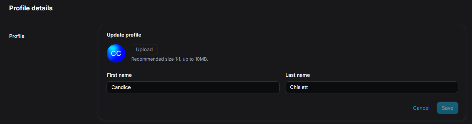 - Update your first and last name