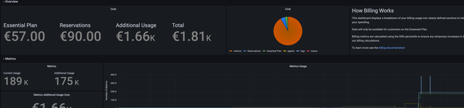At FusionReactor we have created the Billing usage dashboard to ensure cost transparency. This dashboard displays a breakdown of your billing usage into clearly defined sections to help you keep on top of your spending.