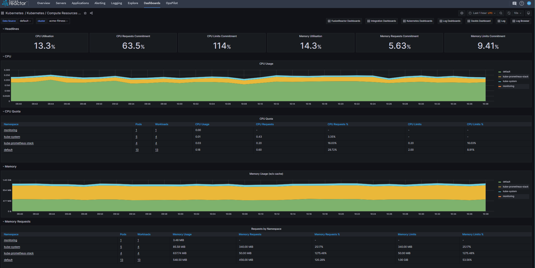 This data can be viewed in FusionReactor Cloud > Dashboards > Kubernetes