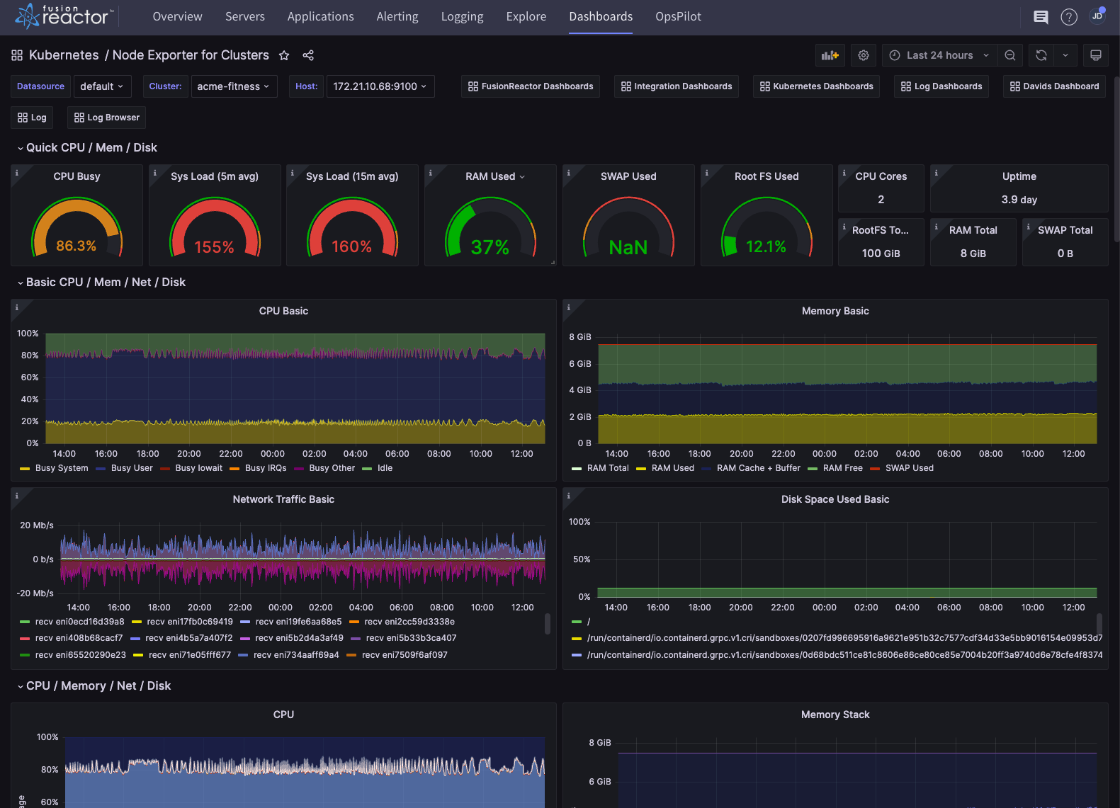 The Kubernetes Node Exporter for Clusters dashboard allows you to troubleshoot cluster problems right down to the VM level.